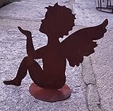 - Engel sitzend auf Bodenplatte: Höhe 36 cm / Breite 40 cm , Metall mit Rostpatina