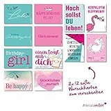 - Du erhältst 2x 12 Glückwunschkarten zum Verschenken und Versenden an Freunde oder Verwandte. | Also hast Du die 12 Karten mit den lustigen Sprüchen und coolen Motive gleich doppelt (: | Die Rückseite lässt sich mit allen gängigen Stiften ausfüllen.