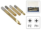 - Alle Gewindebohrer sind goldfarben und Titan beschichtet und ausserordentlich stabil. In den Akkuschrauber gesteckt und los geht es. Problemlos, einwandfrei.