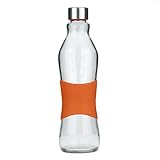 - Durchsichtige 1L GLAS Trinkflasche mit einer ORANGEN rutschfesten Silikonhülse