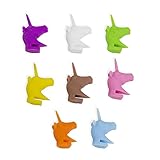 - INHALT. Das Set enthält 8 Glasmarkierer mit Einhornkopf. Farben: violett, weiß, blau, grün, orange, gelb, braun, rosa.