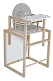 - MAXIMALE SICHERHEIT: In diesem Hochstuhl mit Tisch ist Ihr Kind immer perfekt gesichert (45,0 cm x 88,0 cm x 55,0 cm). Ein Herausfallen aus dem Hochstuhl Holz wird durch den praktischen Gurt verhindert.