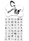 - Aluminiumanhänger ca. 38x25mm mit Motiv Hunde : Vorderseite: Motivwahl 1-48 + Wunschname Hintergrund, Schriftart und Schriftfarbe (siehe Bild - Ausnahme: der Anhänger hat eine weiße und eine silberne Seite, die silberne Seite kann nicht weiß oder grau bedruckt werden, die weiße nicht silber- hier ist keine Ausnahme möglich. Es geht einfach nicht. Sie müssen sich entscheiden welche Seite Sie als Vorderseite und welche als Rückseite wünschen.)