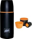 - Doppelwandige Edelstahlisolierflasche mit 2 Trinkbechern und bequemem Tastenverschluss