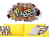 - Selbstklebender Wandsticker im jugendlichen Graffiti Design mit toller Wandausbruch Optik für das Jugendzimmer von Teenagern und alle weiteren Musikliebhaber!