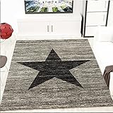 - Ein melierter und moderner Teppich mit Sternmuster in Schwarz und Grau