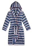 - blau geringelter Bademantel für Jungen aus der beliebten SCHIESSER-Nachtwäscheserie Capt´n Sharky mit Kapuze, Bindegürtel und einer aufgesetzten Taschen Knopfleiste mit dunkelblauen, eingeprägten Hai-Knöpfen Patch mit Sheriff-Stern, weißem Hai und rotem Sharky-Schriftzug auf der Brust kleines Capt´n-Sharky-Label an der Seitennaht in kuschelweicher Webvelours-Qualität Außen, Innen in Frottee-Qualität