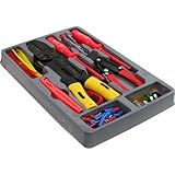 - Unter anderem mit 2 Elektroschraubendrehern, 1 Autolichtprüfer, 1 Kabelschuhklemmzange mit Kabelschuhen und Schrumpfschläuchen und 1 Universalband