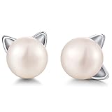 - 2.Perle Größe 7.5-8mm,925 Sterling Silber Katze Ohrringe,Perle Katze Ohrstecker