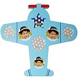 - schöner hochwertiger 3-D Bilderrahmen / Fotorahmen ___ als Fotocollage für 7 Bilder ____ zum Aufhängen ___ Motiv: " Flugzeug in BLAU "
