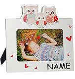 - Niedlicher Babybilderrahmen: Weißer Rahmen aus Holz mit süßen Tiermotiven in grün, blau und rosa, perfekt für das erste Bild vom Baby, ob Junge oder Mädchen