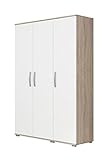 - Kleiderschrank SKATE (B/H/T: 135/198/58) 3-türig mit zwei Schubkästen und einer Spiegeltür, Front und Korpus Alpinweiß/ Außentüren Eiche Sägerau Nachbildung