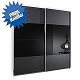 - moderner Schwebetürenschrank , 2-türig, je Element 1 Wäscheboden und 1 Kleiderstange H/B/T ca. 198x180x64 cm Glas Schwarz