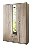 - Kleiderschrank DUO (B/H/T: 135/198/58) 3-türig mit zwei Schubkästen und einer Spiegeltür, San Remo Eiche Nachbildung/ Aufleistungen Chrom