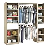 - Der Kleiderschrank hat 2 Kleiderstangen und 10 offene Fächer sowie 2 Schubladen