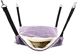 - Lässt sich mit Metallclips am Käfig befestigen. Kann entweder vertikal (die Tiere können sich im Kissen verstecken) oder horizontal aufgehängt werden, sodass sie sich unter den Bezügen einkuscheln können