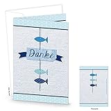 - Hübsche blau-weiß-türkise Dankekarten maritim mit Fische. Die Karten sind geklappt DIN Lang 10,5 x 21 cm. Selbstverständlich mit Kuvert!