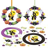 - Jedes Bastelset enthält eine Kranzform aus Moosgummi, selbstklebende Moosgummi-Teile, Glitter-Spukhaus und Band.
