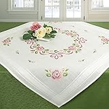 - Wunderschönes Kreuzstich Tischdecken Stick-Set; ideal für den Sommer. Das Blumen-Motiv mit Rosenkranz sorgt für eine tolle sommerliche, florale Stimmung
