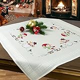 - ★ Wunderschönes Kreuzstich Tischdecken Stick-Set; ideal zu Weihnachten. Das Motiv mit Schneemännern und Schlitten sorgt für eine herzliche winterliche Stimmung