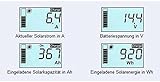 - Angezeigt werden: Ladesrom (A) / Solarbatteriespannung / Solarbatteriespannung / Solarleistung / Solarleistung als Balkendiagramm / Stromzähler (Ah und Wh)