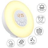 - Perfektes Bettgeschenk für Kinder und das Alte: Selektive FM-Radio, lustige Farblichter, natürliche Aufwachen-Geräusche und einstellbares warmes weißes Licht machen dieses Aufwachen-Licht perfekt, um Ihr Schlafzimmer zu passen. 100% neu und 18 Monate Garantie
