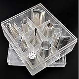 - Dieses Kit enthält 9 Tüllen für die häufigsten Anwendungen beim Backen – 2 große Tüllen, 5 mittlere Tüllen und 2 kleine Tüllen. Das Kästchen wird Ihnen helfen, die Spritztüllen leichter aufzubewahren.