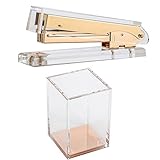 - Material: Acryl/Gold straffen Tabelle; FARBE: transparent/Rose Gold; Größe: Hefter - 6,3 x 15,2 x 3,6 cm; Stift Halter - 11,6 x 7,6 x 7,6 cm