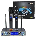 - 【Dual-Frequenzkanal】Professionelle und Intelligent Dual-Wireless-Mikrofonsystem, verwendet die MHz Segment 200-800MHZ das bedeutet, dass die zwei Handmikrofone ohen Störungen gleichzeitig einwandfrei funktionieren können. Und dank der Frequenzsynthese Technik ist das Gerät total fähig, im einem bereiteren Bereich mit Multifrequenz-Umschaltung zu arbeiten.