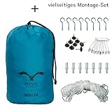 - GRATIS - Praktischer TRAGEBEUTEL erleichtert den Transport. MONTAGESET enthält Haken, Dübeln und Schnur. Für alle die unser Netz auf Reisen mitnehmen, bieten wir einen Tragebeutel, der vor Beschädigungen schützt. Die Montage auf Reise kann durch einfache Mittel wie Reisnägel und Klebeband erfolgen. Für alle die das Netz im eigenen Haus und Garten verwenden, bieten wir ein Montageset, mit dem das Netz zuverlässig und fest installiert werden kann.