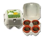 - 4er Eierkarton, 4 Tontöpfchen, 4 Substrattabletten, Pflanzanleitung