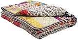 - Queen Size Patchwork Seide Kantha Quilt 228,6 x 274,3 cm Silk Tagesdecke Indian Silk patola Tagesdecke/Überwurf Decke