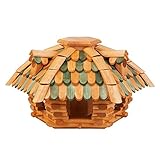 - Vogelhaus im Blockhaus in braun-grün mit Pavillondach in Schindeloptik