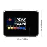 - ☞Viele nützliche Infos: Wecker mit Uhr-Projektion, Wetterdaten & Prognose • Übersichtliche LCD-Anzeige: Uhrzeit, Wochentag, Temperatur, Luftfeuchtigkeit und kommendes Wetter • Top-Design: Front in Pianolack-Optik, Kanten mattsilber • Projektor neigbar und fokussierbar: Blitzschnell scharf stellen für bis zu 2 Meter Entfernung