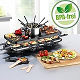 - Raclette-Grill für bis zu 12 Personen mit 12 Anti-Haftbeschichteten Pfännchen | Fondue für bis zu 8 Personen mit 8 Fonduegabeln | Fonduetopf mit Glasdeckel zum sicheren Vorheizen und zur alternativen Nutzung