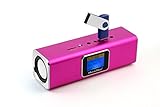 - Mobiler Stereo-Breitbandlautsprecher mit Display für MP3/4, CD/DVD, iPhone, iPad, iPod, PSP, Mobiltelefone, PC/Notebook, integrierter MP3 Player für USB-Sticks und TF MicroSD Karten