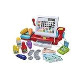 - Registrierkasse mit Scanner mit Light und Sound-Effekt, Mikrofon, Rechner und Spielgeld.