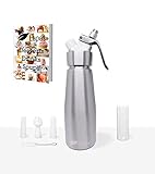 - ATTRAKTIVER SAHNESPENDER - Es könnte Ihnen schwerfallen zu entscheiden, was besser aussieht - Ihre hausgemachte Leckereien oder dieser aus gebürstetem Aluminium Sahnebereiter. In beiden Fällen sind Sie sicher, Ihre Freunde und Familie zu beeindrucken, und aus der Mahlzeit bzw. Nachtischzeit einen unvergesslichen Moment zu machen, dank dieses Sahnespenders in Ihrer Küche! Sie werden außerdem das kostenlose E-book mit 435 Seiten von leckeren Nachtischrezepten bekommen!