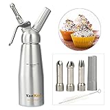 - IDEAL FÜR AMATEURE UND PROFIS: Das einfach zu bedienende 500 ml Sahnespender erlaubt Amateure und Profis zu schüren köstliche Gaumenfreuden. Es erlaubt Ihnen, gezuckert oder ungezuckert Creme Kaffee, Milchshake, Cupcakes top, Eis, Eisbecher, Cupcakes, oder leckere Mousse mit Leichtigkeit.