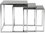 - 3er Set Beistelltisch, 8mm Schwarzglas gehärtet, Gestell Metall verchromt