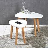 - Skandinavisch: Beistelltische mit weiß lackierten Tischplatten und holzfarbenen Tischbeinen - Nordisches Design versprüht Gemütlichkeit und Eleganz