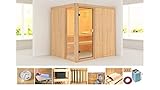 - Karibu Elementsauna aus 68 mm starken Wandelementen ohne Dachkranz und inkl. 9-kW-Ofen. Wände aus vo