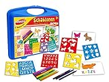 - Inklusive 6 Schablonen, 10 Filzstiften und Blättern zum Bemalen