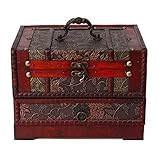 - Klassisches Design - Maße: 26,5 x 19 x 20 cm; Maße oben: 21,5 x 16 x 3 cm; Höhe der unteren Schublade: 5,5 cm; Maße des oberen Faches mit Deckel: 10 x 9 x 2 cm; Mit Spiegel im Deckel sieht der Kasten sehr schön und edel aus. Mit praktischem Tragegriff lässt sich leicht transportieren. Alles ist an seinem Platz, und bleibt immer griffbereit, was auch das Wiederfinden erleichtert