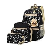 - Donykarry 3tlg Schultaschen-Set mit Reißverschluss Verschluss für Mädchen und Damen