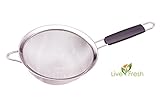 - Erstklassiger, äußerst engmaschiger Seiher aus Edelstahl. Dieses robuste Netz ist hart, geschmeidig und behält wie andere doppelmaschige Siebe seine Form während es zum Sieben der kleinsten Lebensmittel, wie Quinoa, Reis, Brühwürfel, Frucht-Smoothies und anderer feinen trockenen Zutaten wie Mehl und Zucker benutzt wird.
