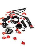 - Bondage-Set in schwarz - Mit diesem Bondage-Set werden Sie garantiert eine unvergessliche Nacht und eine sexy Reise in die Fantasie erleben. Das Set ist perfekt für Einsteiger in Bondage und SM-Spiel. Perfekt für Rollenspiele. Würzen Sie Ihr Liebesleben und betreten Sie eine neue Welt des Liebesspiels. Lieferumfang: 1 Metallhandschellen mit Schlüsseln, 1 Lederpeitsche (Neunschwänzige Katze), 1 Augenbinde