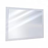 - Der Spiegel kommt im schlichten Weiß und einer großen Spiegelfläche daher.