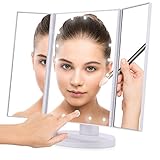 - BEDIENUNG MIT EINEM TASTENDRUCK: Hell genug 22 LED Beleuchtung, Built-in 22 LED-Birnen mit AN / AUS-Berührungstaste, können Sie Ihr Make-up im dunklen oder schlecht beleuchteten Bereich leichter tun. Halten Sie Ihren Finger auf die Kreisförmige Taste auf der Vorderseite, um die LED-Lichter zu dimmen oder aufzuhellen; die natürliche LED-Beleuchtung sorgt für eine helle und klare Spiegelung.