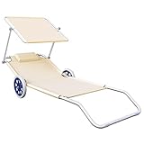- Wunderbar bequeme Sonnenliege, praktisch und komfortabel mit hochwertigem Textilgewebe in beige bezogen - 5-fach verstellbare Rückenlehne - Stabilität und Sicherheit durch hochwertigen Aluminiumrahmen und dreibeinige Konstruktion